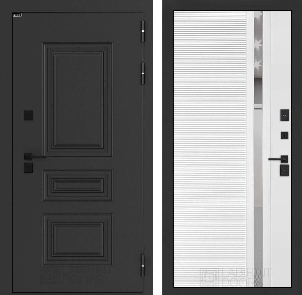 Черная фурнитура (полимерная): накладки сувальдные со шторкой, дверная ручка, ночная задвижка, металлический эксцентрик с защитной вставкой.