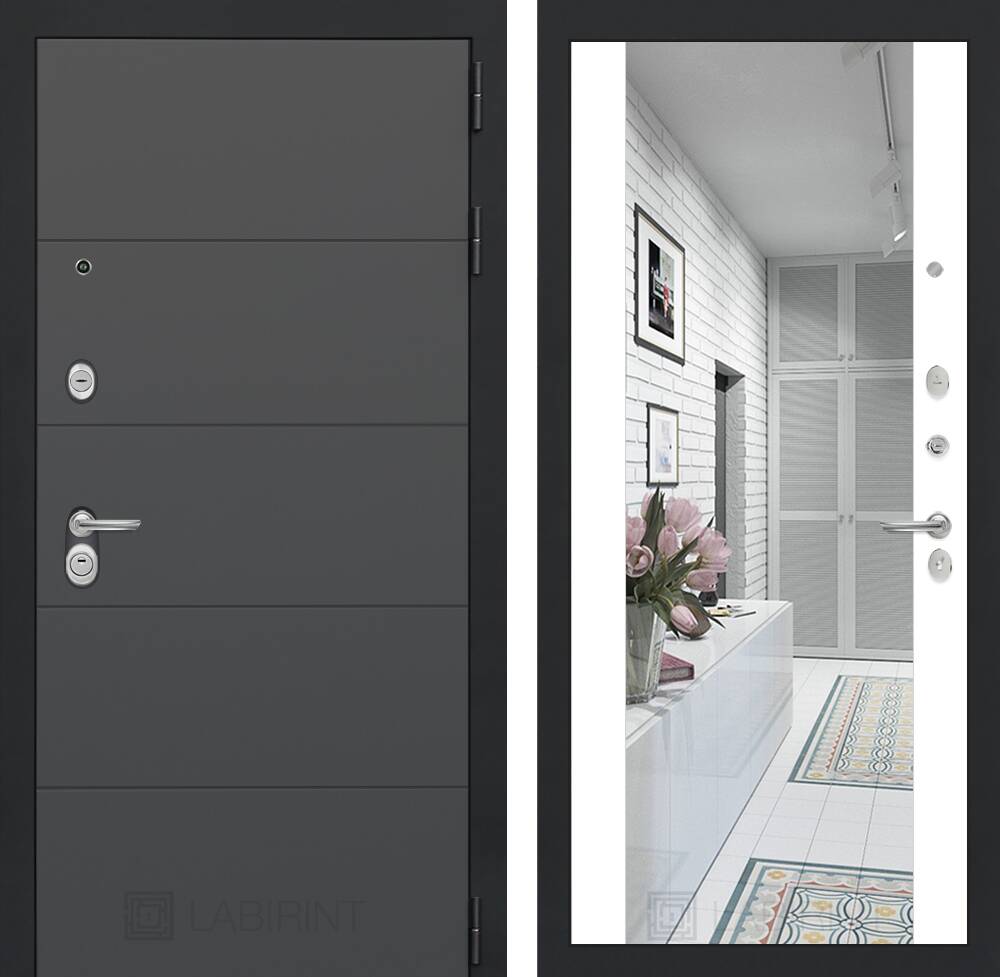 Декоративная MDF панель 12 мм с широким зеркалом, цвет "Белый софт" (без текстуры)