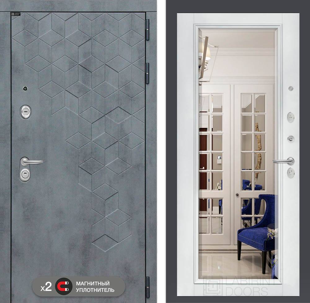 Декоративная MDF панель 16 мм с багетом и Зеркалом фацет, цвет "Белый софт"