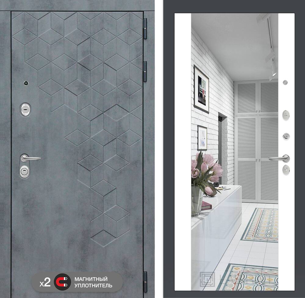 Декоративная MDF панель 12 мм с широким зеркалом, цвет "Белый софт" (без текстуры)