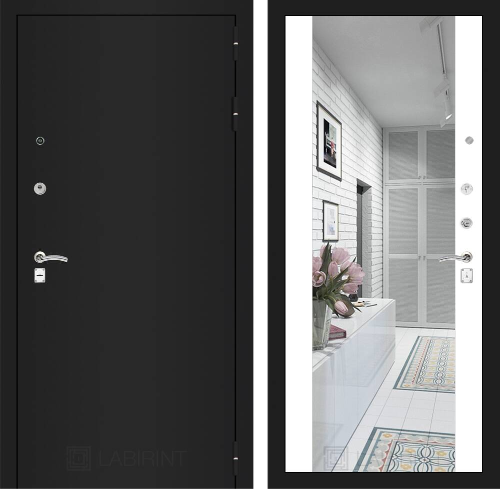 Декоративная MDF панель 12 мм с широким зеркалом, цвет "Белый софт" (без текстуры)
