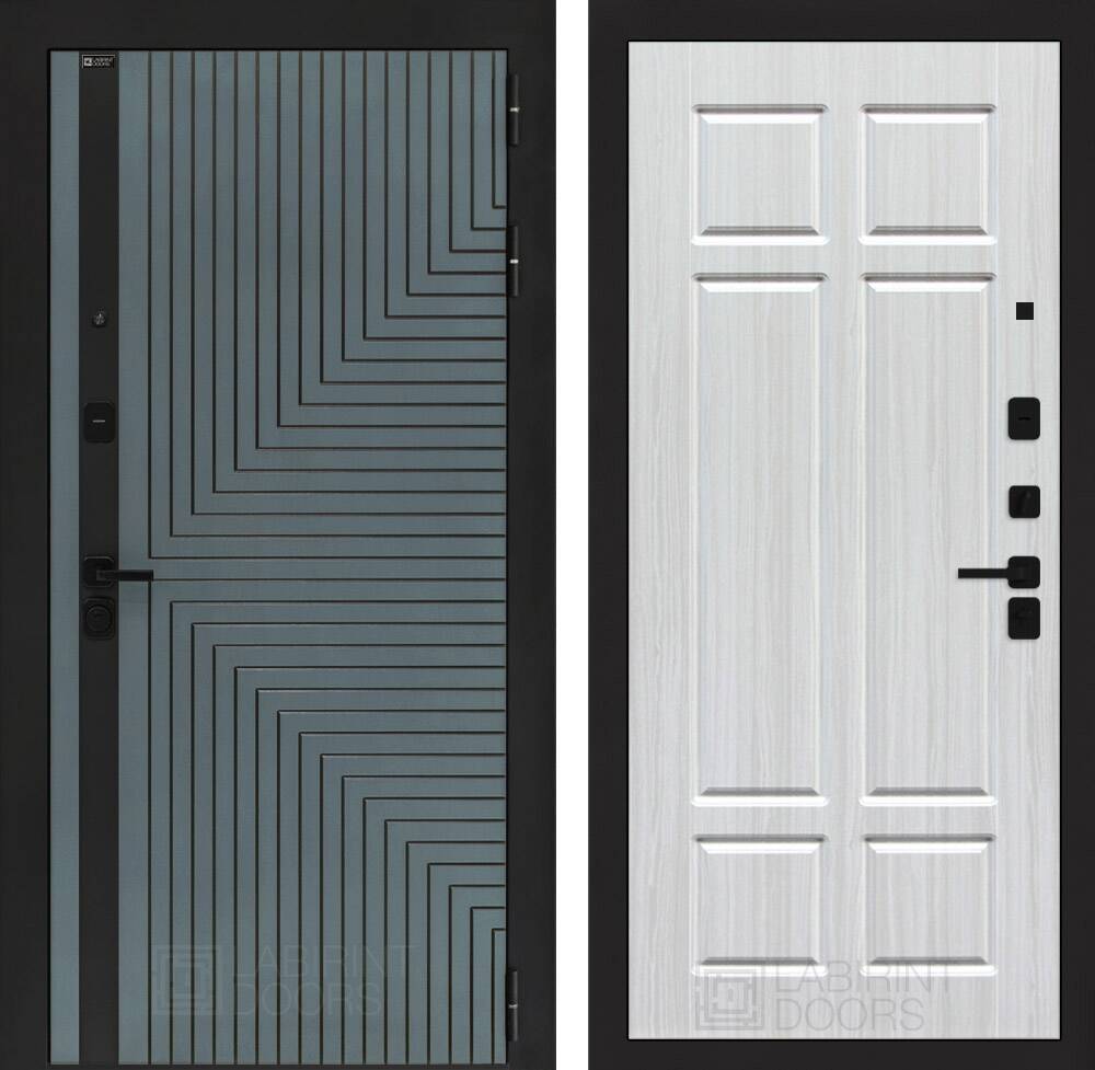 Фурнитура в черном цвете: Броненакладка врезная, накладка со шторкой, глазок , дверная ручка, ночная задвижка. Цилиндр ключ-вертушка (производитель не регламентируется), регулируемый эксцентрик.