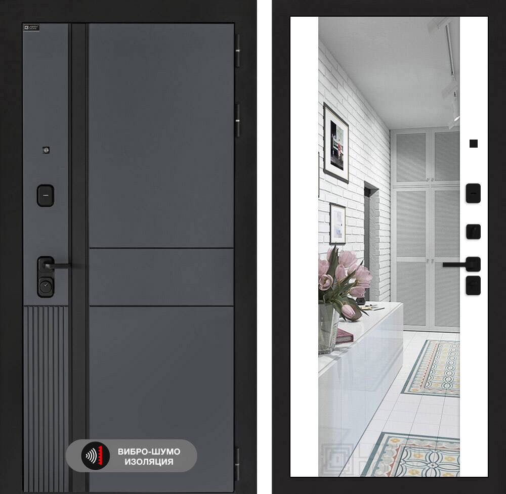 Фурнитура в черном цвете: Броненакладка врезная, накладка со шторкой, глазок , дверная ручка, ночная задвижка. Цилиндр ключ-вертушка (производитель не регламентируется), регулируемый эксцентрик.