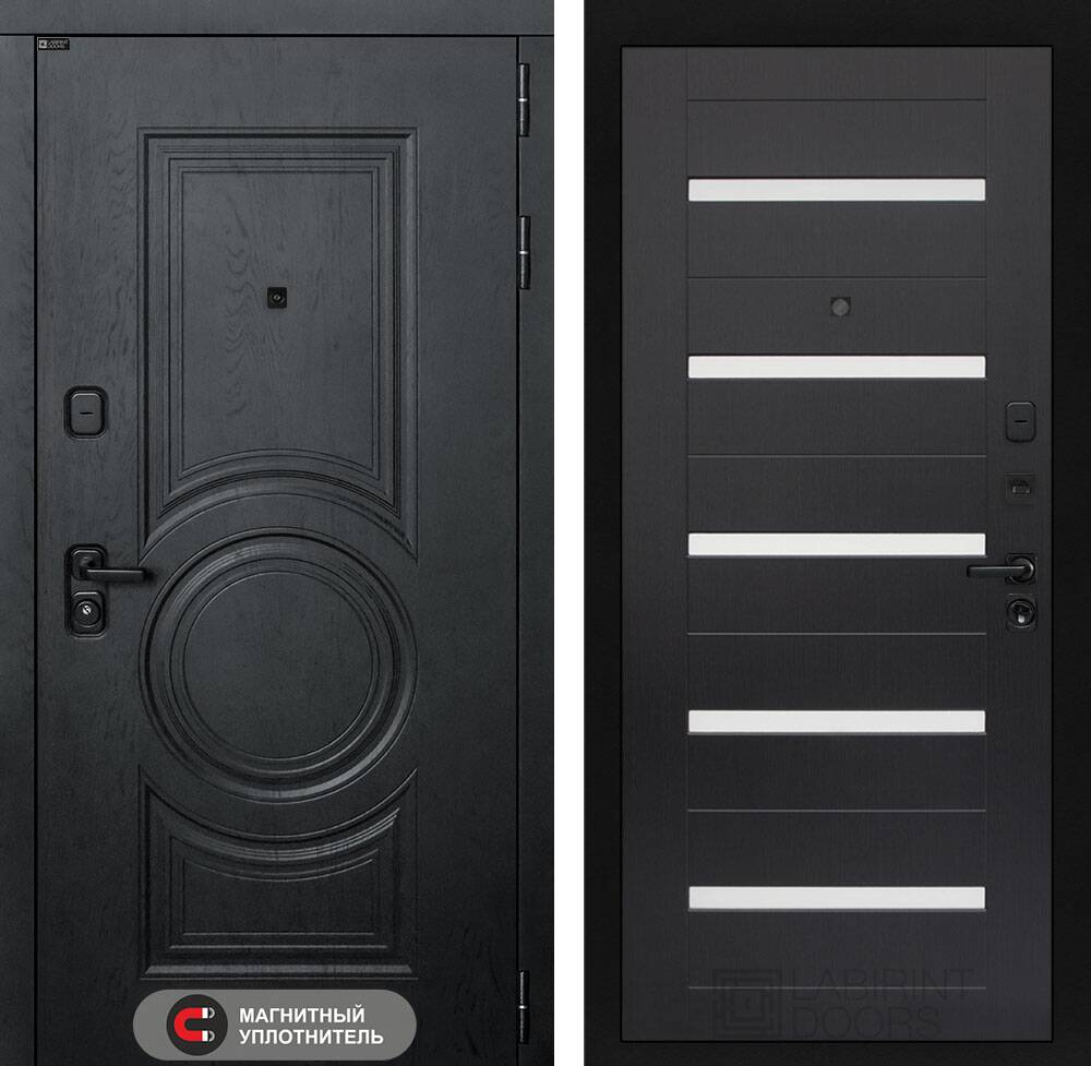 Фурнитура в черном цвете: Броненакладка врезная, накладка со шторкой, глазок , дверная ручка, ночная задвижка. Цилиндр ключ-вертушка (производитель не регламентируется), регулируемый эксцентрик.