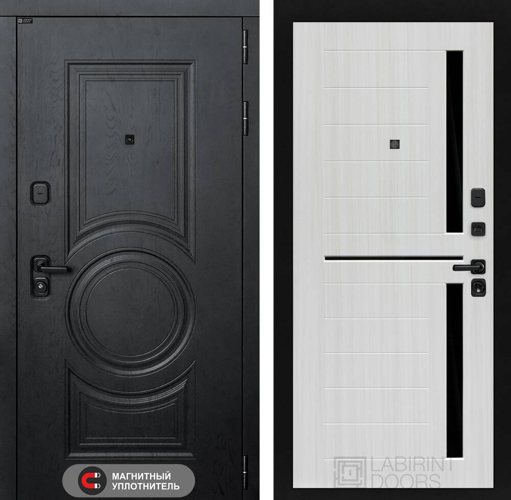 Фурнитура в черном цвете: Броненакладка врезная, накладка со шторкой, глазок , дверная ручка, ночная задвижка. Цилиндр ключ-вертушка (производитель не регламентируется), регулируемый эксцентрик.