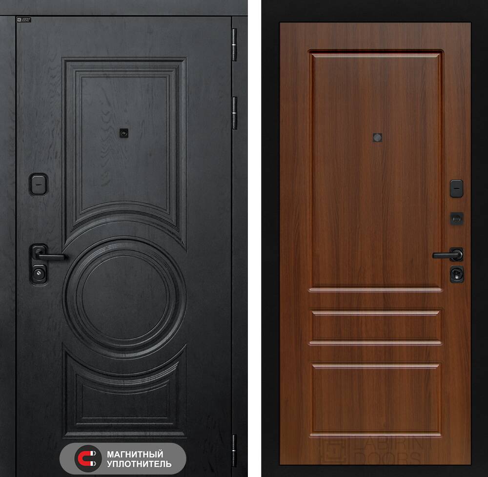Фурнитура в черном цвете: Броненакладка врезная, накладка со шторкой, глазок , дверная ручка, ночная задвижка. Цилиндр ключ-вертушка (производитель не регламентируется), регулируемый эксцентрик.