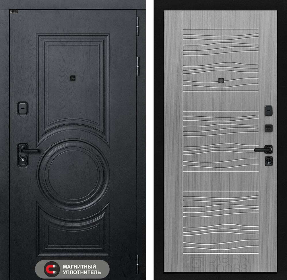 Фурнитура в черном цвете: Броненакладка врезная, накладка со шторкой, глазок , дверная ручка, ночная задвижка. Цилиндр ключ-вертушка (производитель не регламентируется), регулируемый эксцентрик.