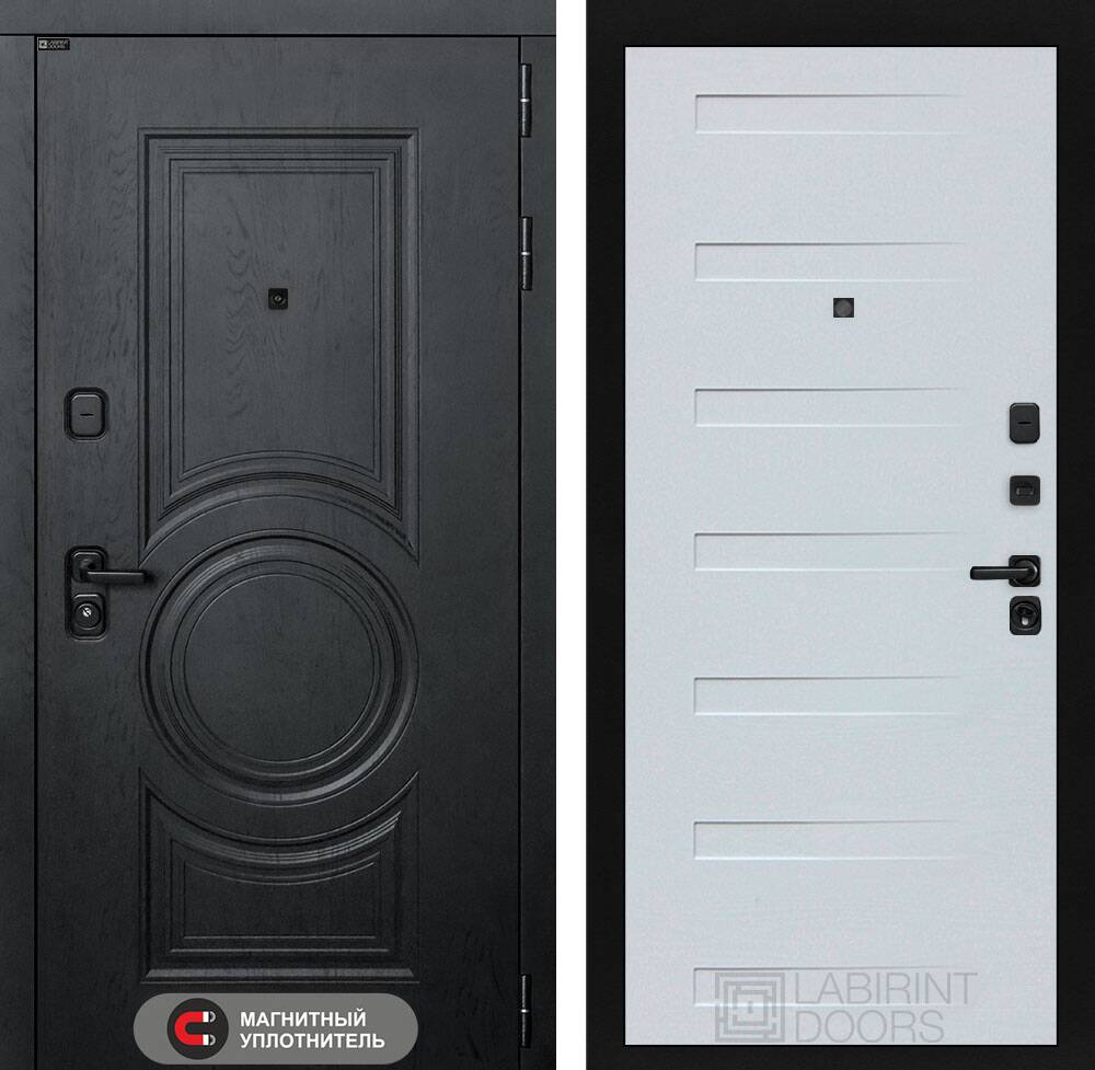 Фурнитура в черном цвете: Броненакладка врезная, накладка со шторкой, глазок , дверная ручка, ночная задвижка. Цилиндр ключ-вертушка (производитель не регламентируется), регулируемый эксцентрик.