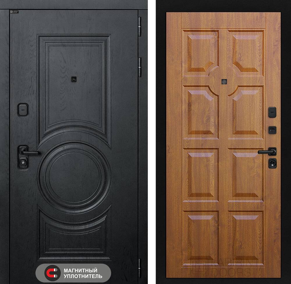 Фурнитура в черном цвете: Броненакладка врезная, накладка со шторкой, глазок , дверная ручка, ночная задвижка. Цилиндр ключ-вертушка (производитель не регламентируется), регулируемый эксцентрик.