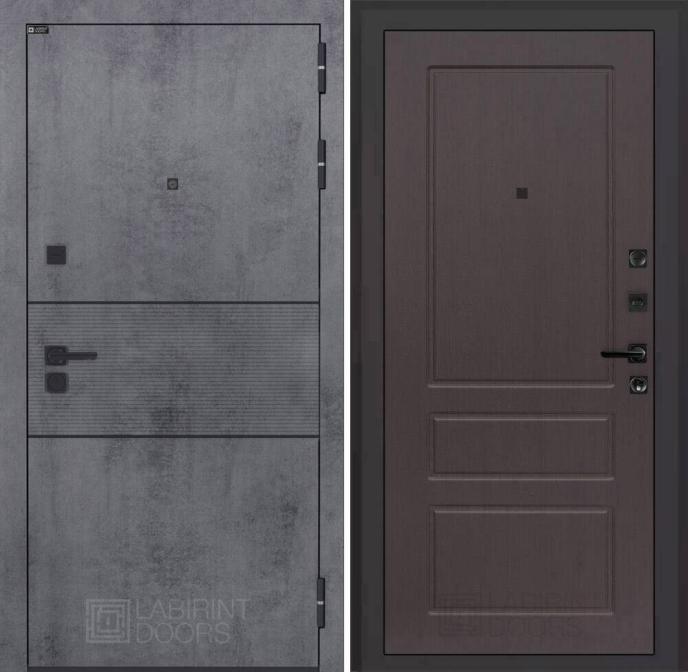 Современная MDF панель 10 мм с наличником, цвет "Бетон темный", вставка черный молдинг
