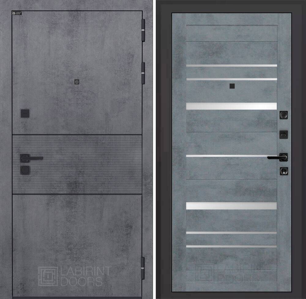 Современная MDF панель 10 мм с наличником, цвет "Бетон темный", вставка черный молдинг