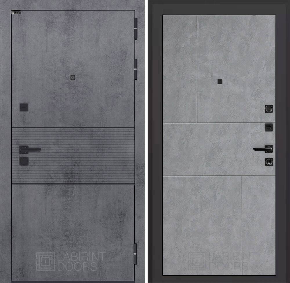 Современная MDF панель 10 мм с наличником, цвет "Бетон темный", вставка черный молдинг