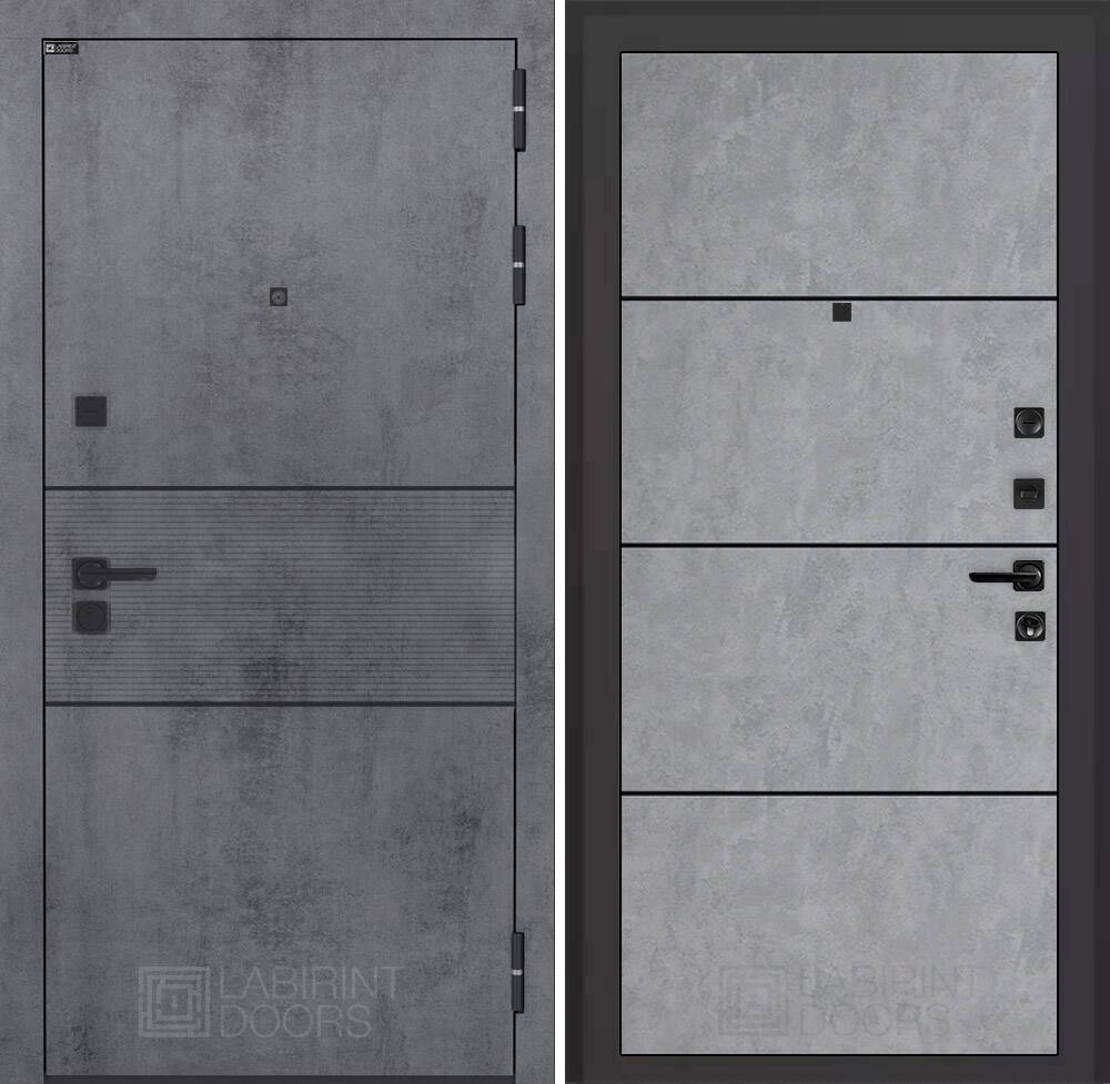 Современная MDF панель 10 мм с наличником, цвет "Бетон темный", вставка черный молдинг