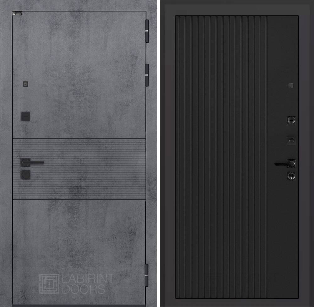 Современная MDF панель 10 мм с наличником, цвет "Бетон темный", вставка черный молдинг