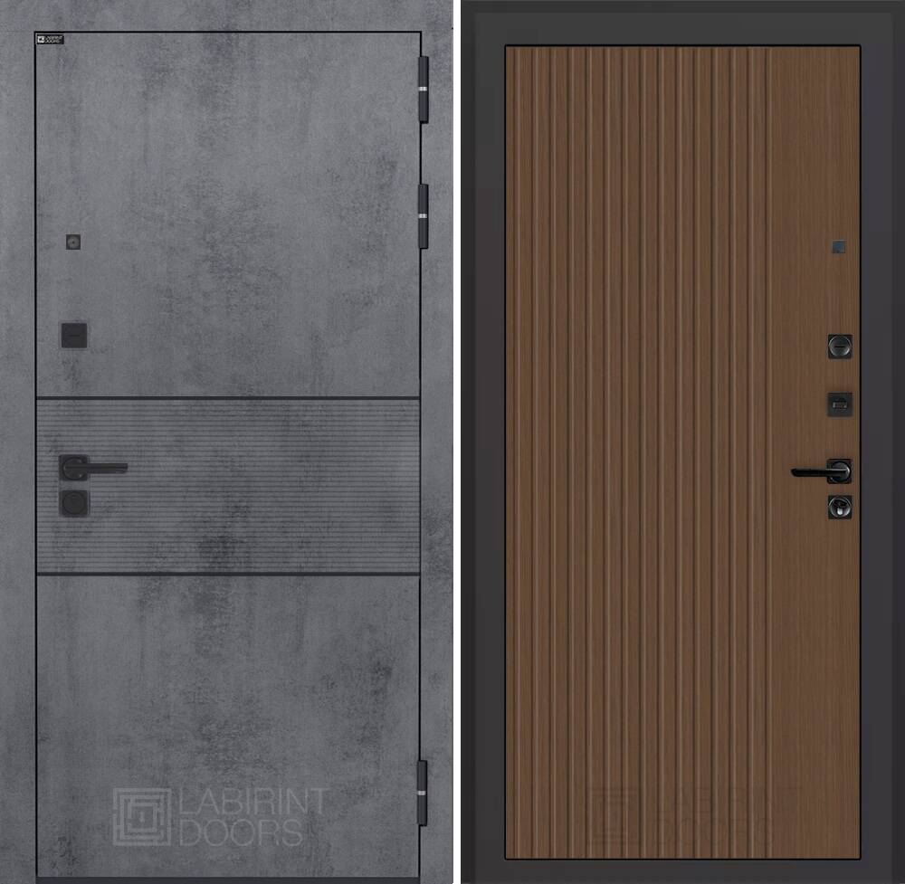 Современная MDF панель 10 мм с наличником, цвет "Бетон темный", вставка черный молдинг