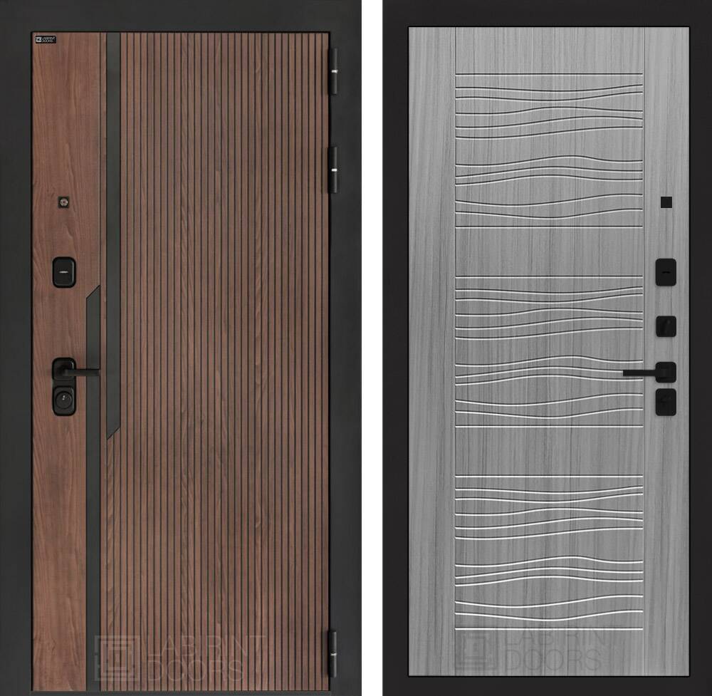 Фурнитура в черном цвете: Броненакладка врезная, накладка со шторкой, глазок , дверная ручка, ночная задвижка. Цилиндр ключ-вертушка (производитель не регламентируется), регулируемый эксцентрик.