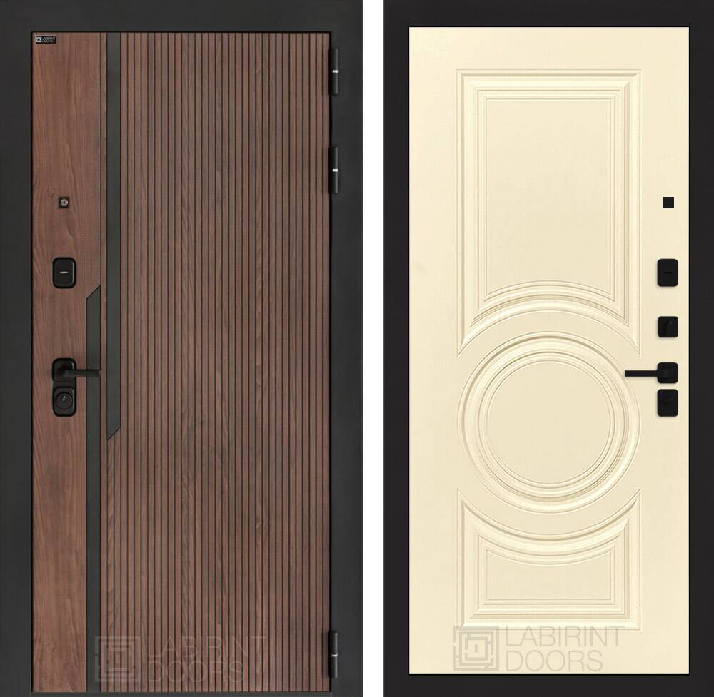 Фурнитура в черном цвете: Броненакладка врезная, накладка со шторкой, глазок , дверная ручка, ночная задвижка. Цилиндр ключ-вертушка (производитель не регламентируется), регулируемый эксцентрик.