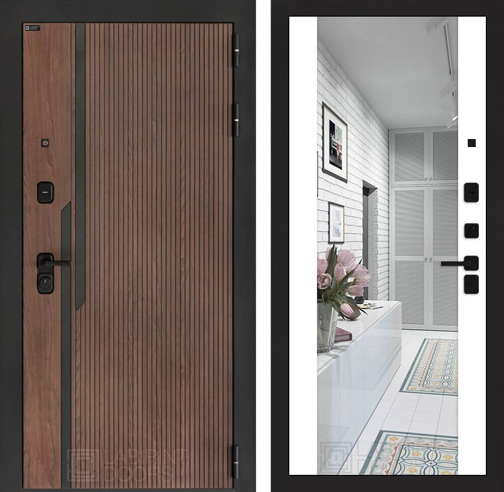 Фурнитура в черном цвете: Броненакладка врезная, накладка со шторкой, глазок , дверная ручка, ночная задвижка. Цилиндр ключ-вертушка (производитель не регламентируется), регулируемый эксцентрик.