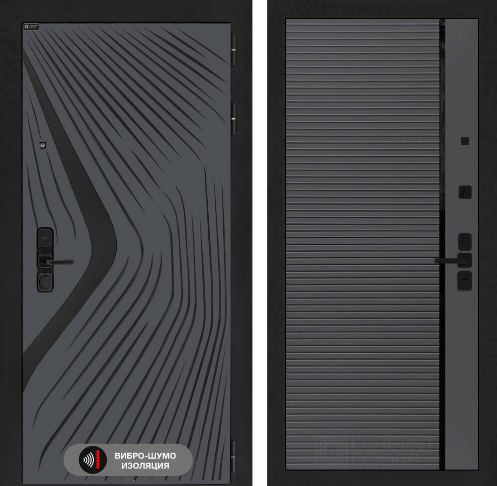 Фурнитура в черном цвете: Броненакладка врезная, накладка со шторкой, глазок , дверная ручка, ночная задвижка. Цилиндр ключ-вертушка (производитель не регламентируется), регулируемый эксцентрик.