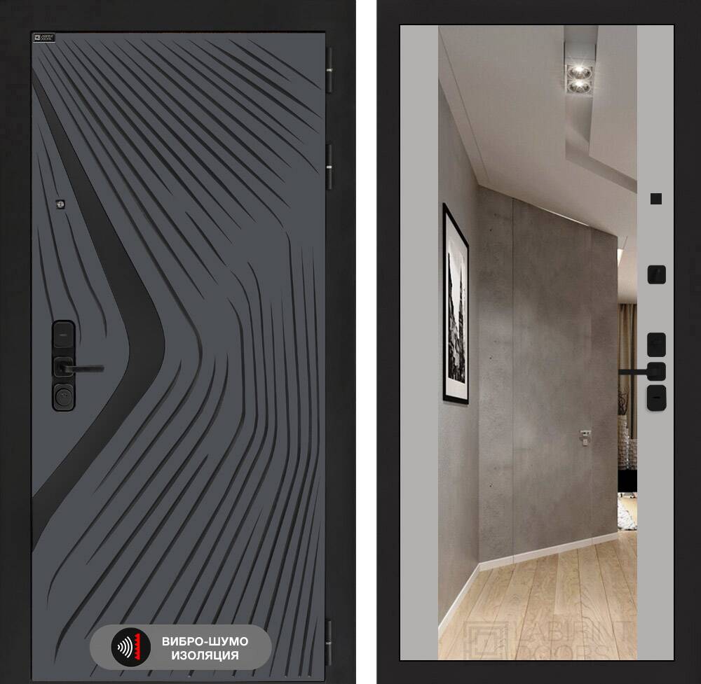 Декоративная MDF панель 12 мм с широким зеркалом, цвет "Софт Грей" (без текстуры)