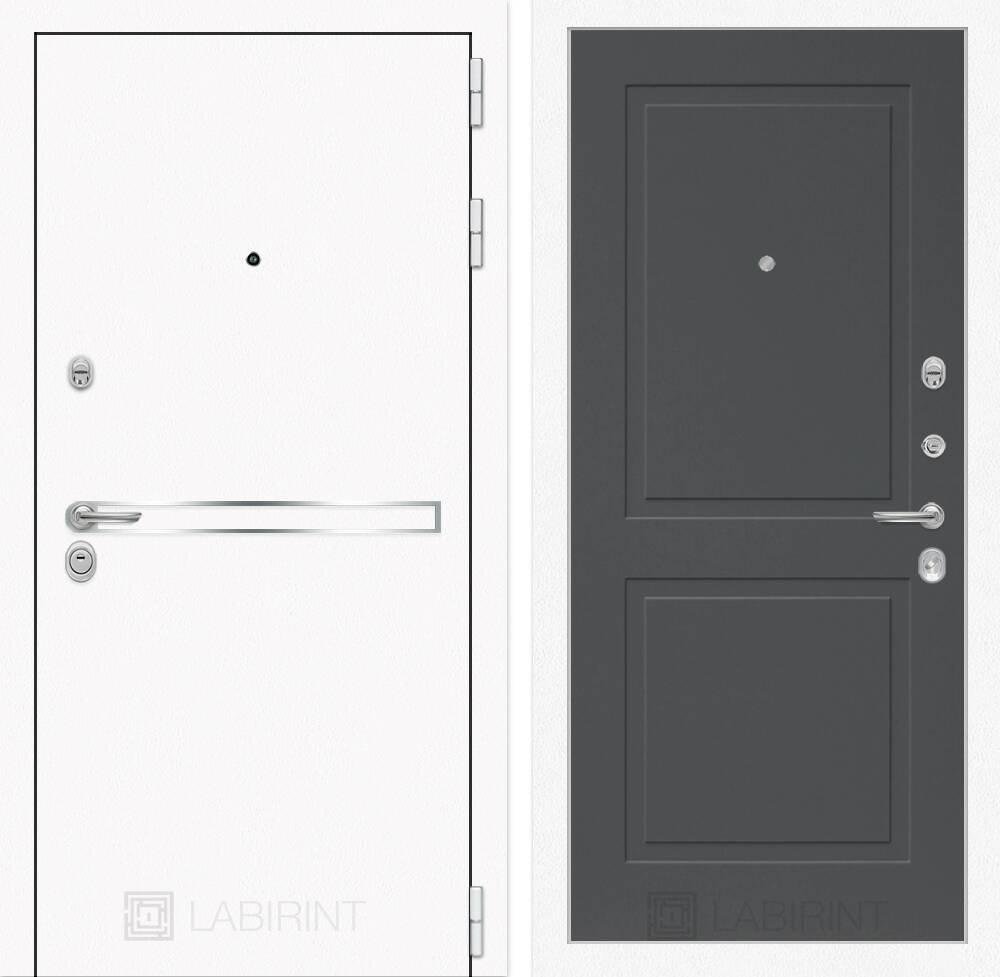 Металл с покрытием "Шагрень" белая, зеркальная вставка из нержавеющей стали
