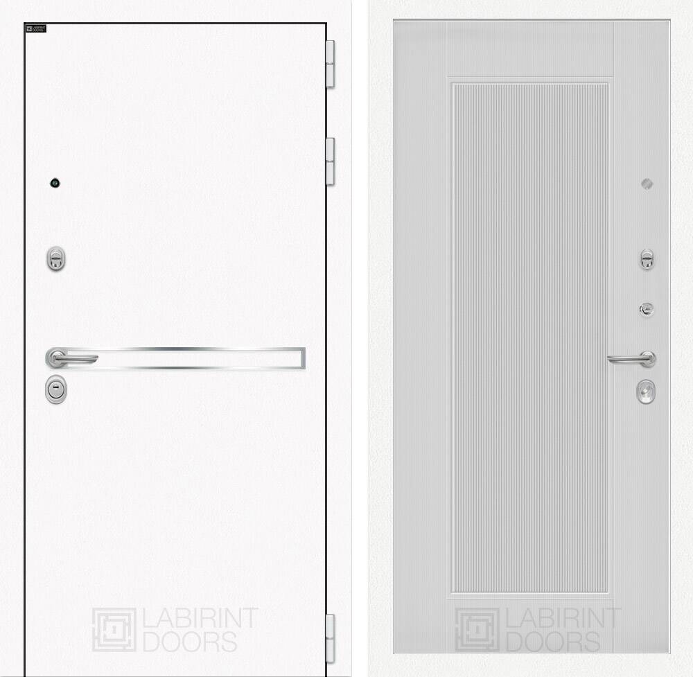 Металл с покрытием "Шагрень" белая, зеркальная вставка из нержавеющей стали