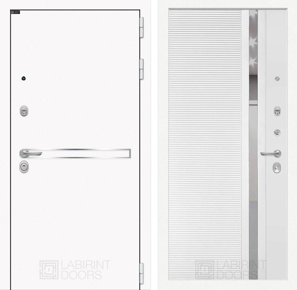 Металл с покрытием "Шагрень" белая, зеркальная вставка из нержавеющей стали