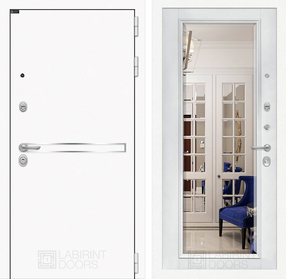 Металл с покрытием "Шагрень" белая, зеркальная вставка из нержавеющей стали