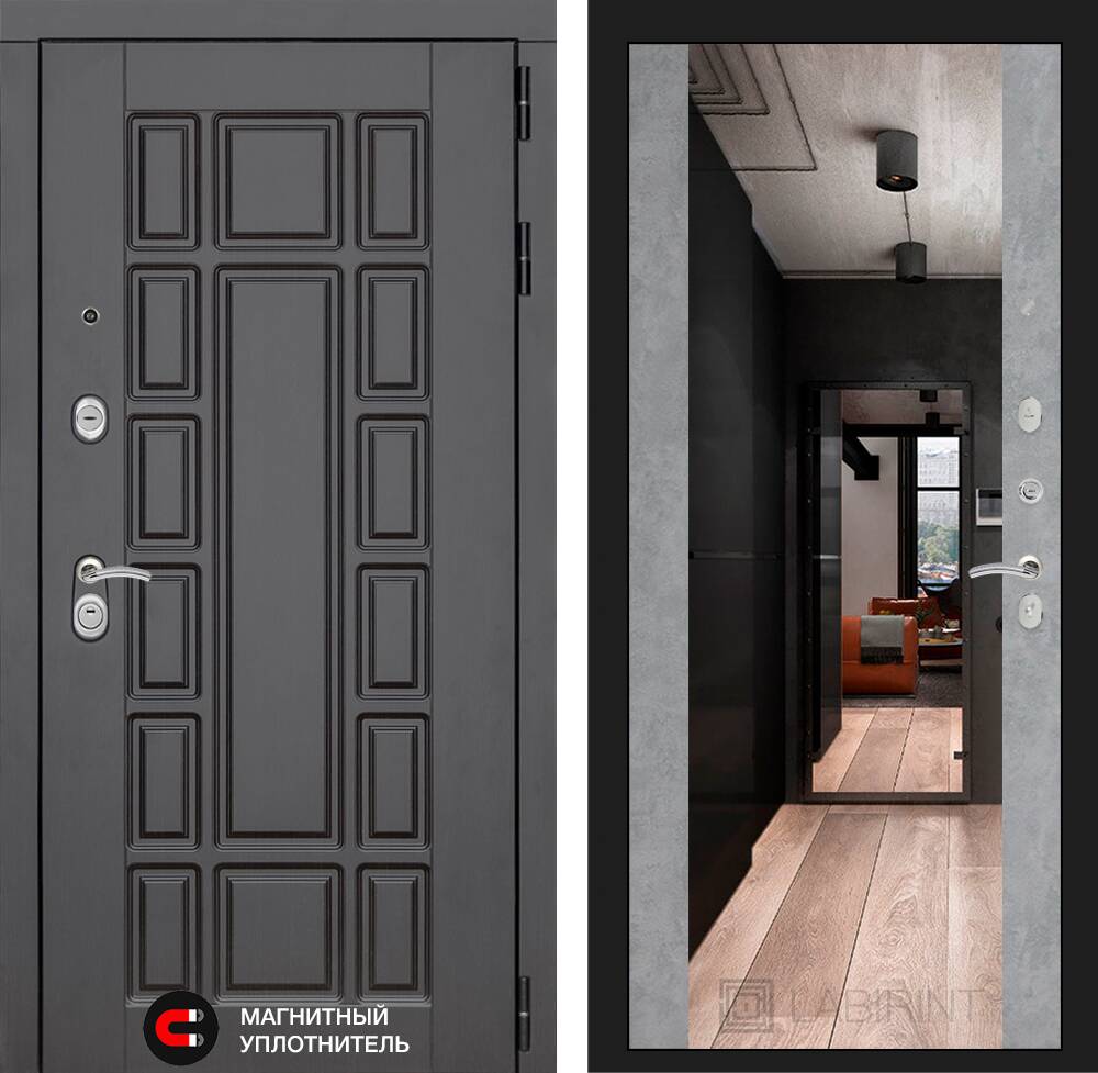 Декоративная МДФ панель 12 мм с широким зеркалом, цвет "Бетон светлый"