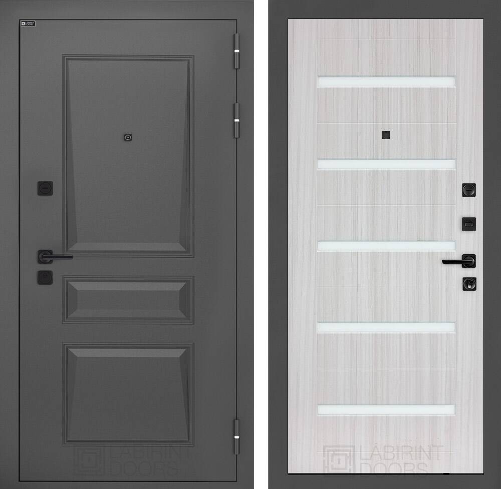 Фурнитура в черном цвете: Броненакладка врезная, накладка со шторкой, глазок , дверная ручка, ночная задвижка. Цилиндр ключ-вертушка (производитель не регламентируется), регулируемый эксцентрик.