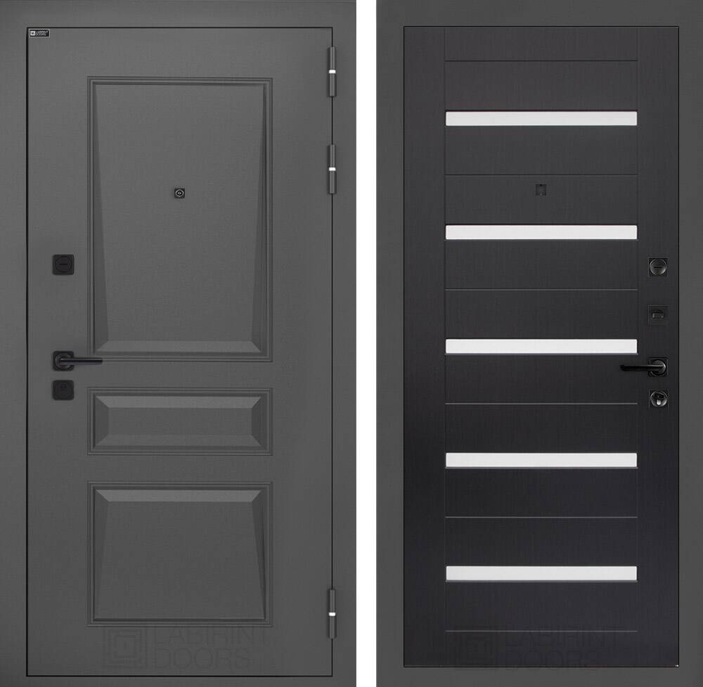 Фурнитура в черном цвете: Броненакладка врезная, накладка со шторкой, глазок , дверная ручка, ночная задвижка. Цилиндр ключ-вертушка (производитель не регламентируется), регулируемый эксцентрик.