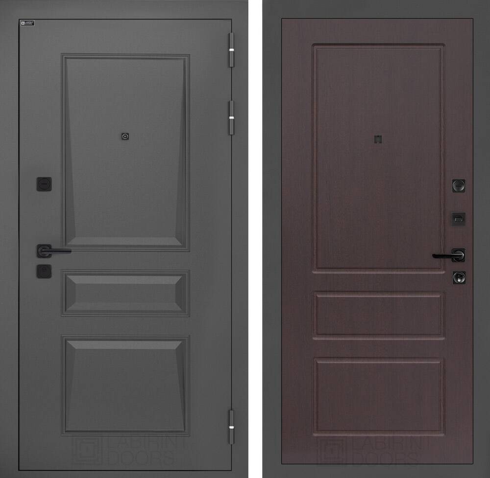 Фурнитура в черном цвете: Броненакладка врезная, накладка со шторкой, глазок , дверная ручка, ночная задвижка. Цилиндр ключ-вертушка (производитель не регламентируется), регулируемый эксцентрик.