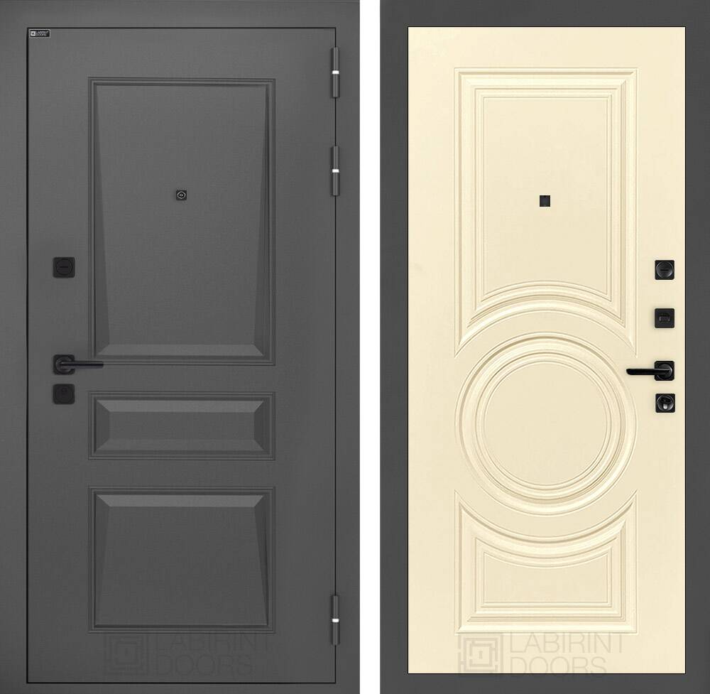 Фурнитура в черном цвете: Броненакладка врезная, накладка со шторкой, глазок , дверная ручка, ночная задвижка. Цилиндр ключ-вертушка (производитель не регламентируется), регулируемый эксцентрик.