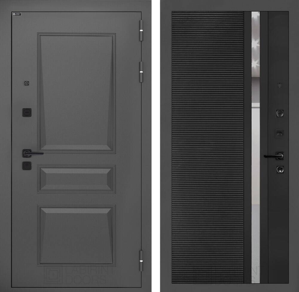 Фурнитура в черном цвете: Броненакладка врезная, накладка со шторкой, глазок , дверная ручка, ночная задвижка. Цилиндр ключ-вертушка (производитель не регламентируется), регулируемый эксцентрик.
