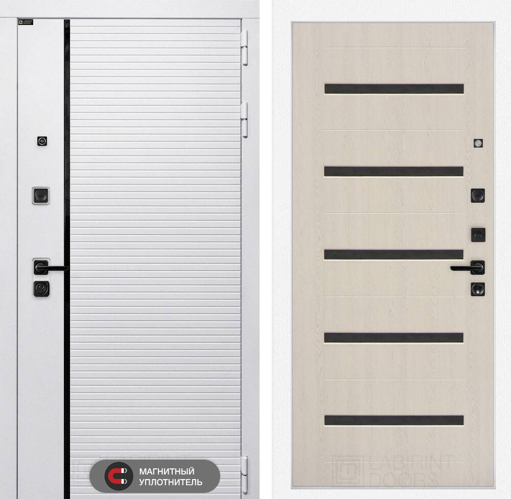 Современная MDF панель 10 мм с наличником, цвет "Лофт белый", вставка черный молдинг
