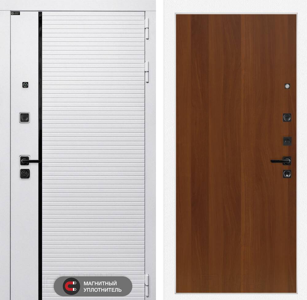 Фурнитура в черном цвете: Броненакладка врезная, накладка со шторкой, глазок , дверная ручка, ночная задвижка. Цилиндр ключ-вертушка (производитель не регламентируется), регулируемый эксцентрик.