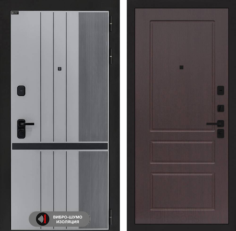 Фурнитура в черном цвете: Броненакладка врезная, накладка со шторкой, глазок , дверная ручка, ночная задвижка. Цилиндр ключ-вертушка (производитель не регламентируется), регулируемый эксцентрик.