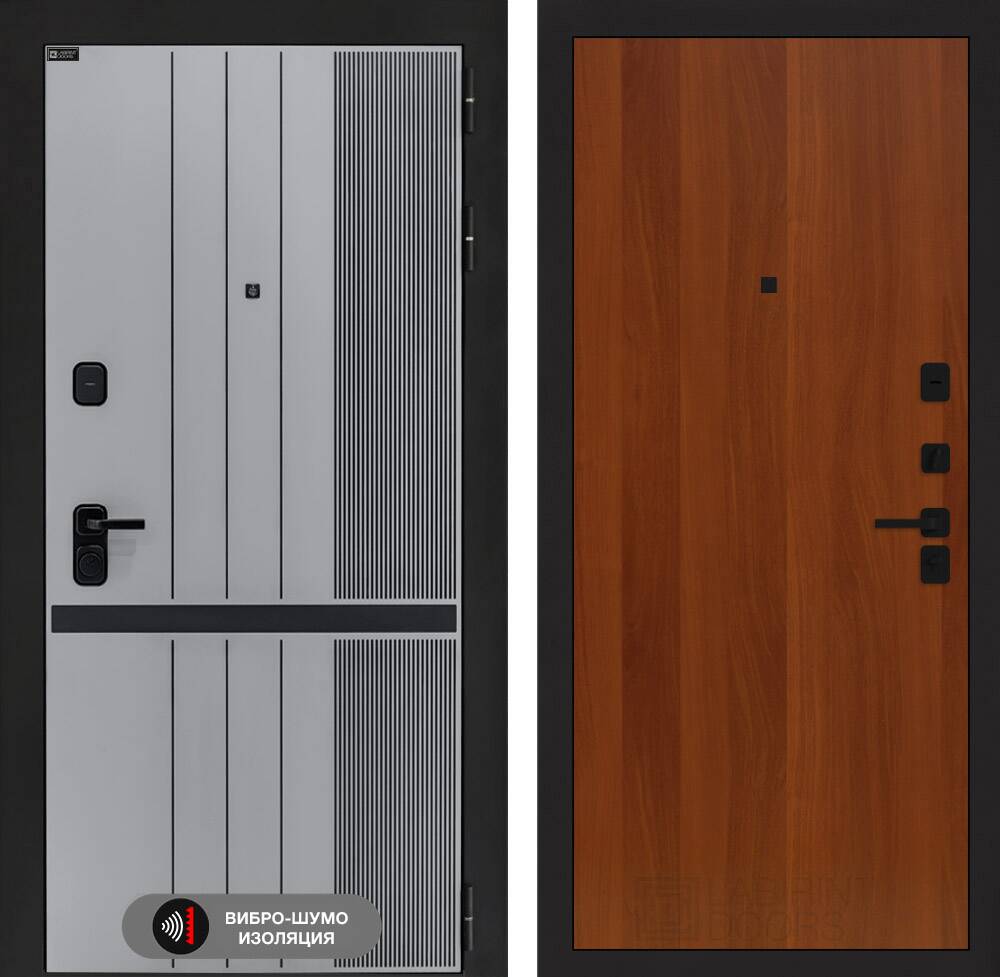 Фурнитура в черном цвете: Броненакладка врезная, накладка со шторкой, глазок , дверная ручка, ночная задвижка. Цилиндр ключ-вертушка (производитель не регламентируется), регулируемый эксцентрик.