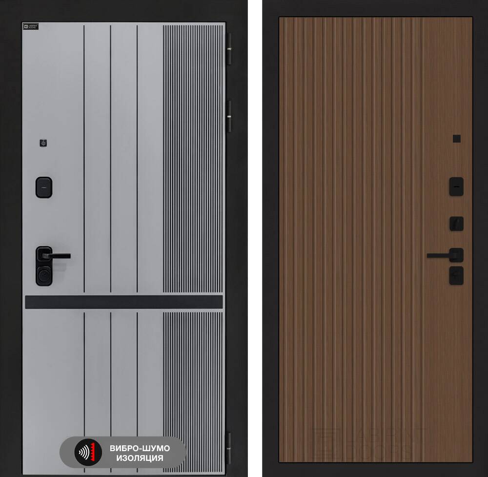 Фурнитура в черном цвете: Броненакладка врезная, накладка со шторкой, глазок , дверная ручка, ночная задвижка. Цилиндр ключ-вертушка (производитель не регламентируется), регулируемый эксцентрик.