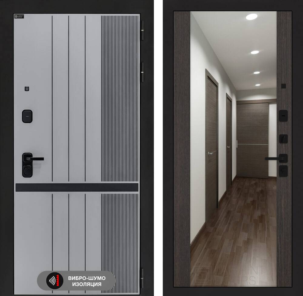 Фрезерованная МДФ панель 10 мм, цвет "Velluto Grigio" с патиной и вставкой из металла в цвет наличника