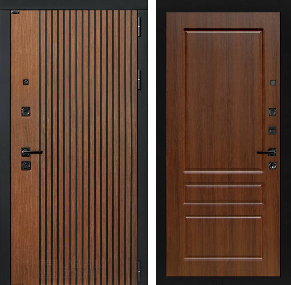 Фурнитура в черном цвете: Броненакладка врезная, накладка со шторкой, глазок , дверная ручка, ночная задвижка. Цилиндр ключ-вертушка (производитель не регламентируется), регулируемый эксцентрик.