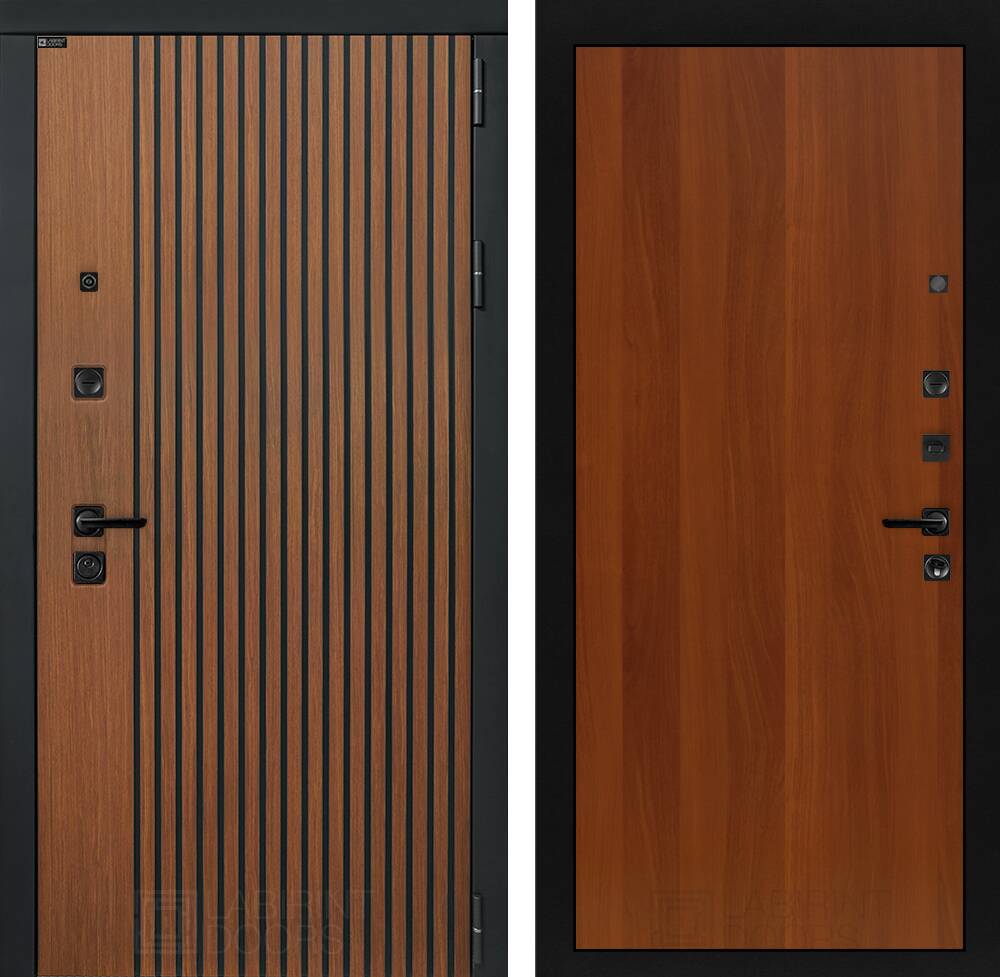 Фурнитура в черном цвете: Броненакладка врезная, накладка со шторкой, глазок , дверная ручка, ночная задвижка. Цилиндр ключ-вертушка (производитель не регламентируется), регулируемый эксцентрик.