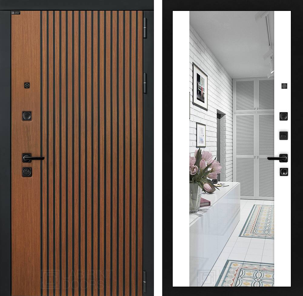 Фурнитура в черном цвете: Броненакладка врезная, накладка со шторкой, глазок , дверная ручка, ночная задвижка. Цилиндр ключ-вертушка (производитель не регламентируется), регулируемый эксцентрик.