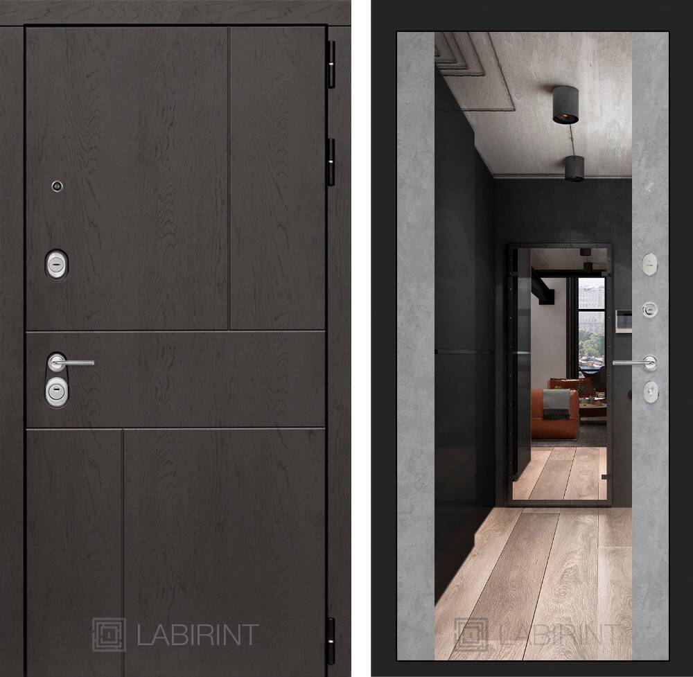 Декоративная МДФ панель 12 мм с широким зеркалом, цвет "Бетон светлый"
