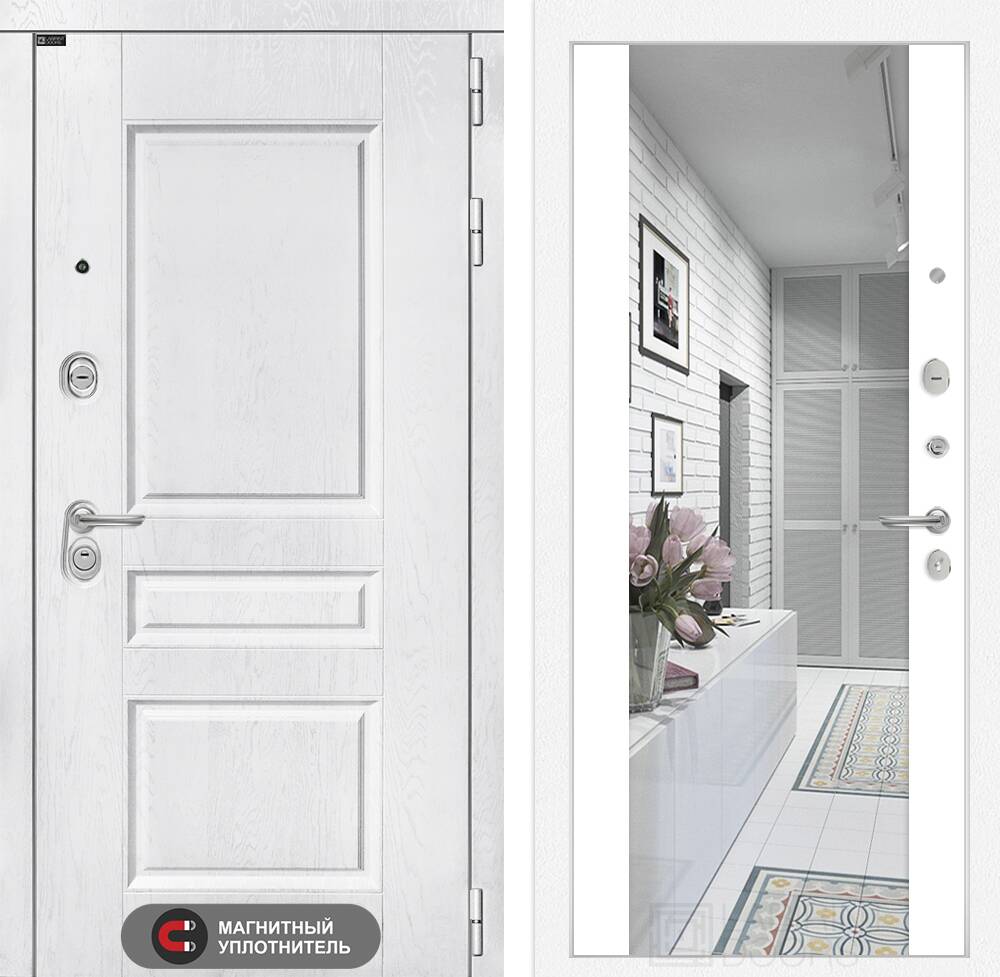 Декоративная MDF панель 12 мм с широким зеркалом, цвет "Белый софт" (без текстуры)